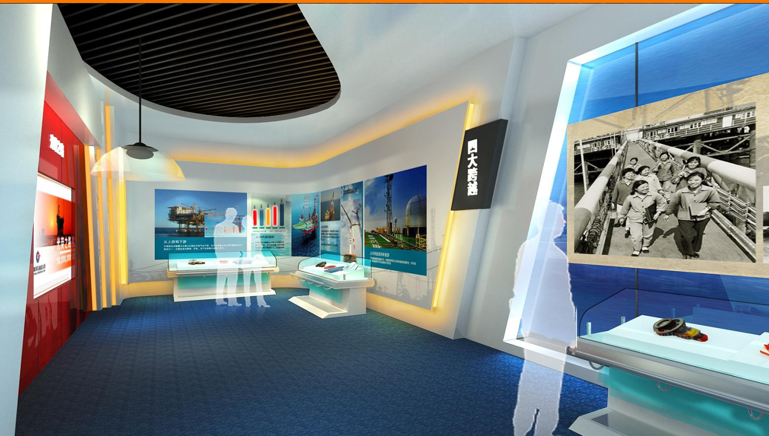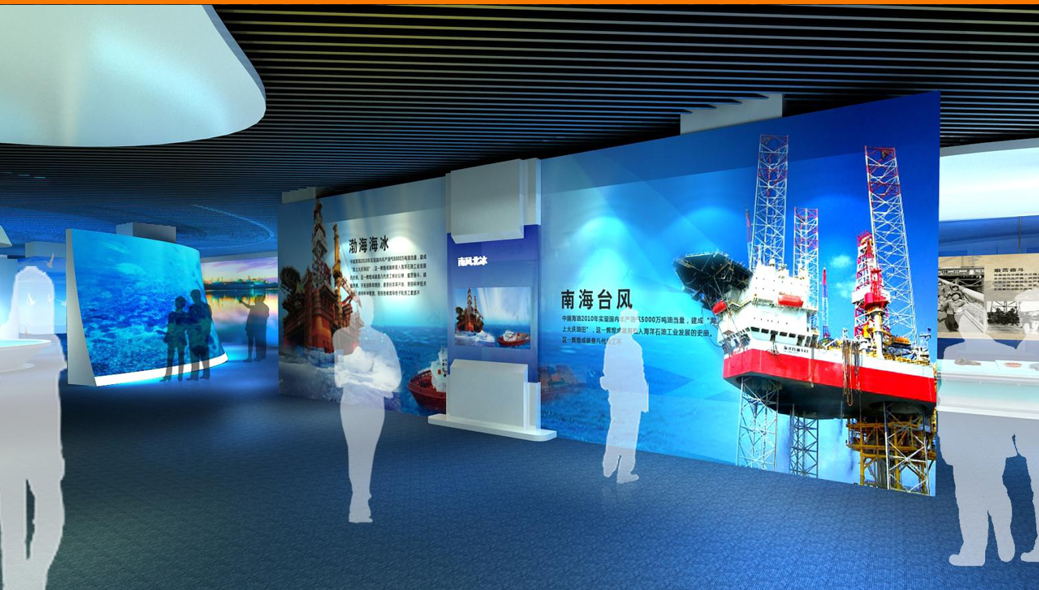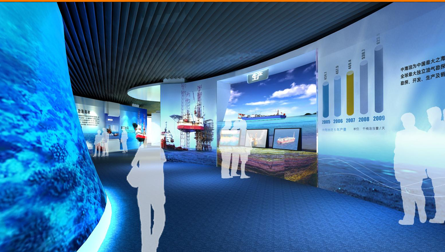 展馆采用了270余幅图片、近100个模型、210多件历史实物、近30组视频,以及幻影成像、光电板、雕塑等展示手段,详细介绍了中国海洋石油工业经历的艰苦创业、对外合作、励精图治和跨越发展这一奋斗历程,展现了海洋石油高科技、高风险等显著特点和海油人拼搏奉献的豪迈气概,是面向社会公众宣传海洋经济的重要组成部分。