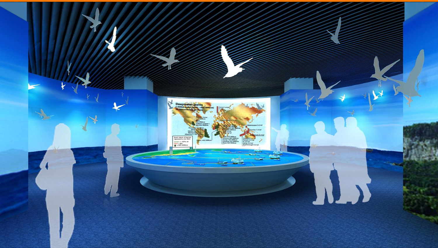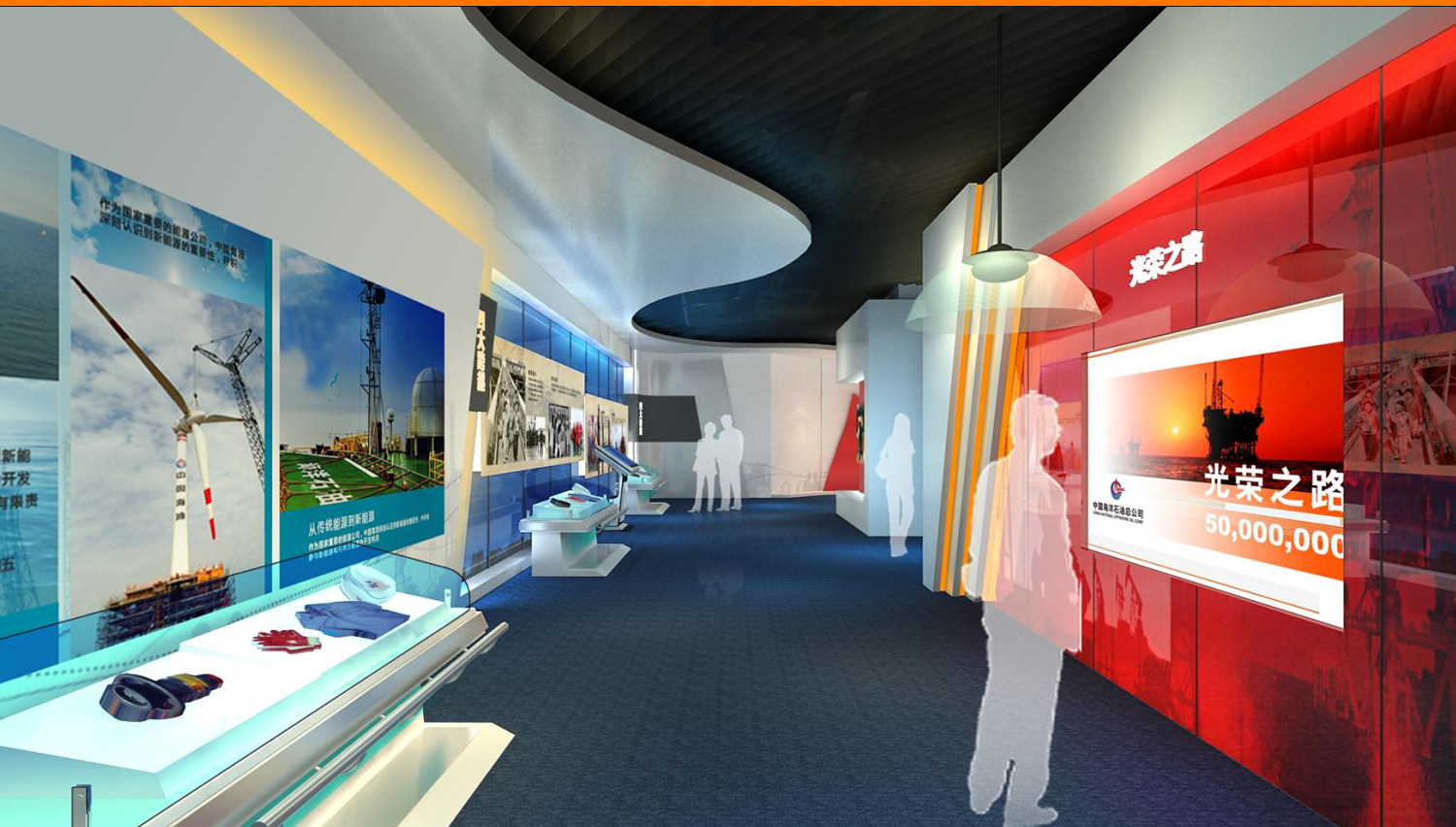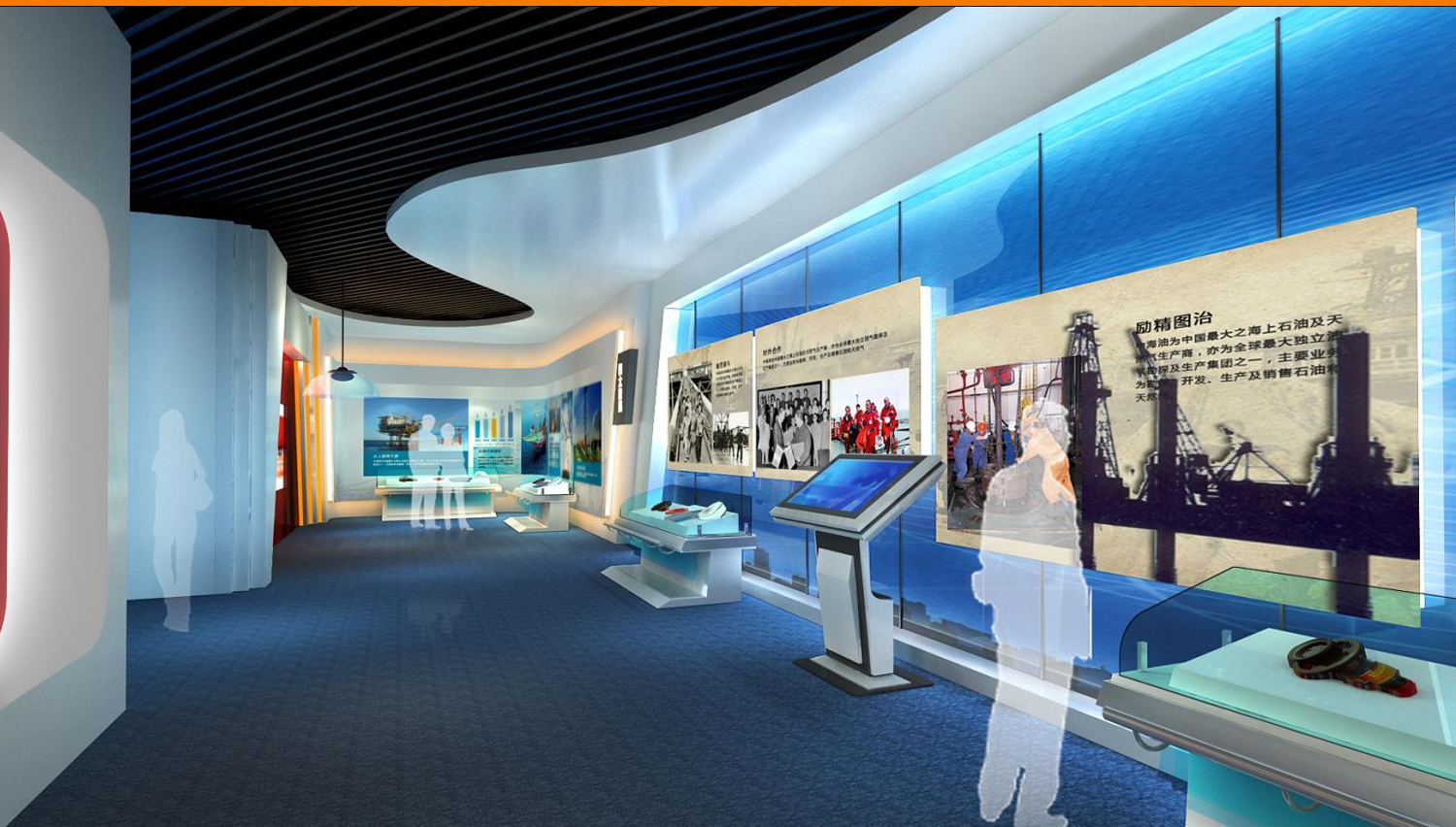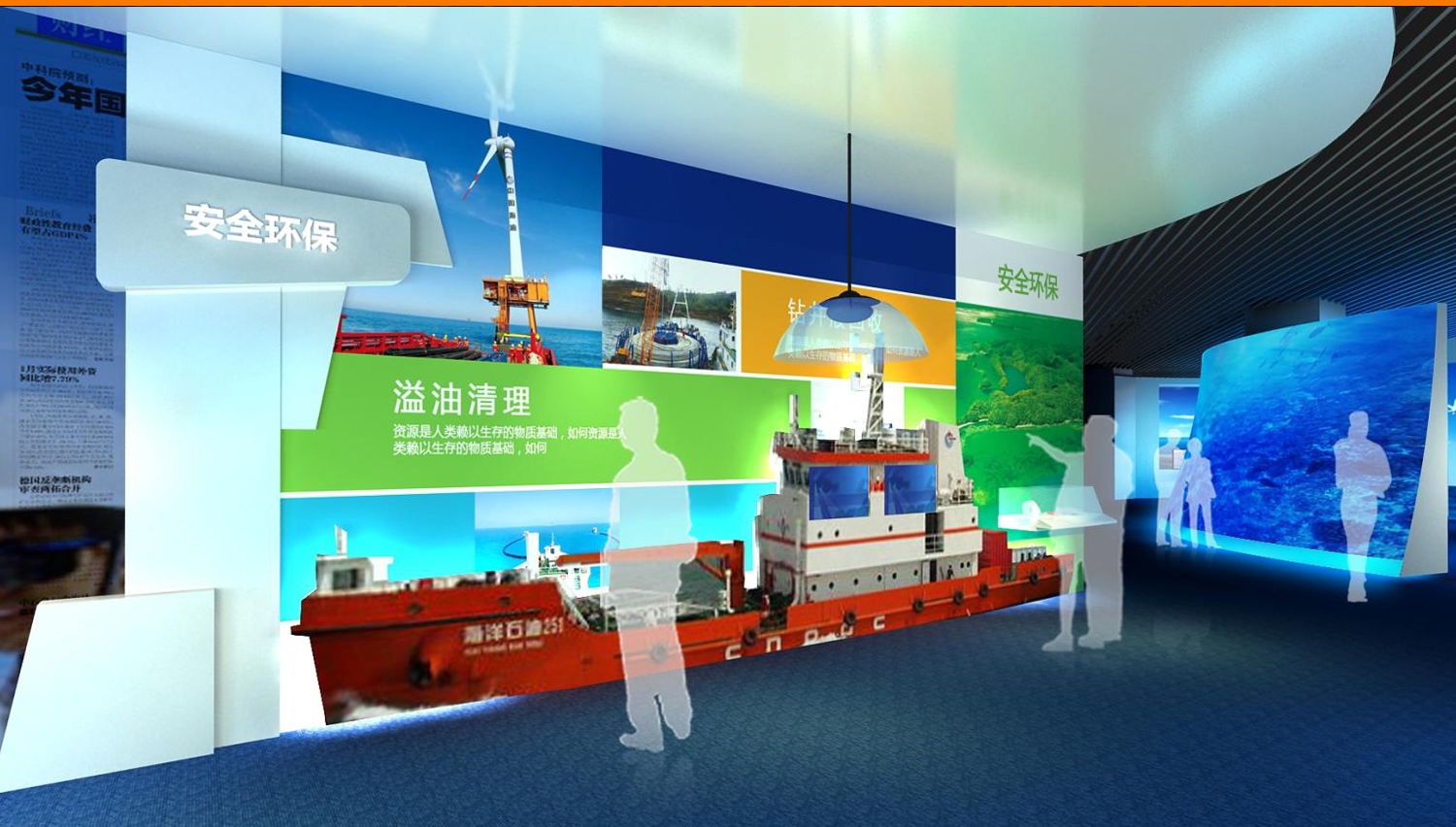 展馆采用了270余幅图片、近100个模型、210多件历史实物、近30组视频,以及幻影成像、光电板、雕塑等展示手段,详细介绍了中国海洋石油工业经历的艰苦创业、对外合作、励精图治和跨越发展这一奋斗历程,展现了海洋石油高科技、高风险等显著特点和海油人拼搏奉献的豪迈气概,是面向社会公众宣传海洋经济的重要组成部分。