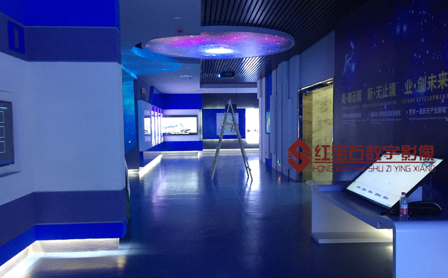 揽月阁二楼为“岁月如歌,筑梦未来”的主题展馆,通过沙盘介绍、航天基地大事记以及入区企业风采记录等,展示了航天基地产业发展、社会配套、生态建设等方面的发展成就,再现了航天基地10年来的风雨历程。