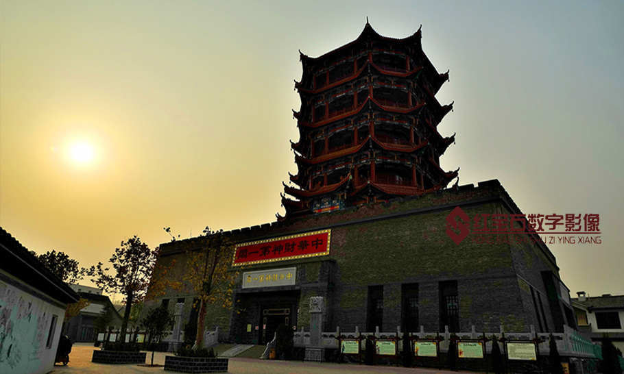 西端为财神文化广场,建有财神阁一座,共7层,高51.8米。阁中,一层为游客休闲、购物互动区;二层为财神文化展示区;三层供奉财神赵公明;四层供奉财神比干;五层供奉财神范蠡;六层七层供奉财神关羽。