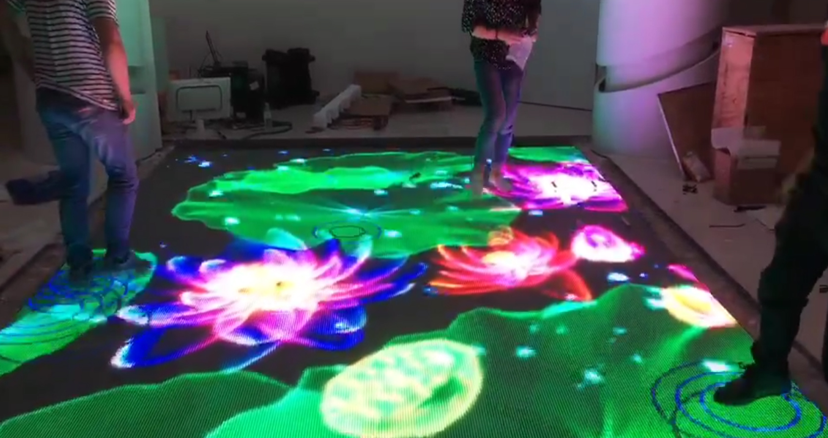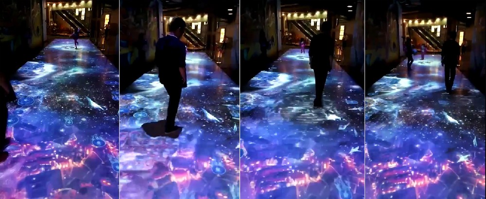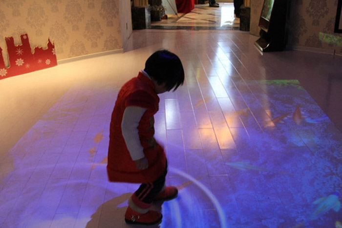 地面互动投影可以将任意一块平淡无奇的地板区域变成令人兴奋的实时交互的神奇之地。该地面投影交互系统独有的一体化设计,易于搭建和控制,使用简便快捷,同时我们可以根据客户的需要定制互动效果内容和控制展板灯光相结合。 通过投影技术,把原本呆板的展示内容结合人们的肢体动作与其产生交互互动,从而体现现代科技的同时也实现信息有效传达,投影于地面、墙面或其它有效载体之上,吸引体验者参与互动。