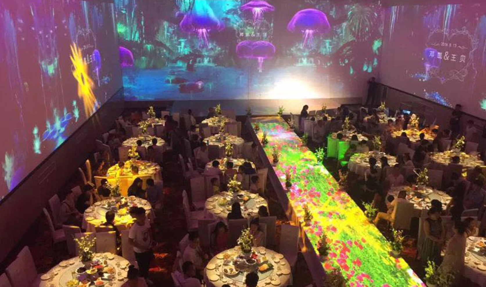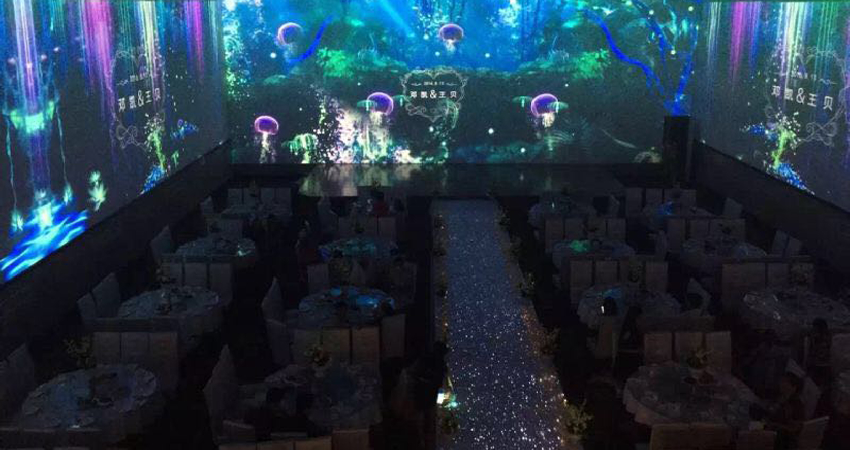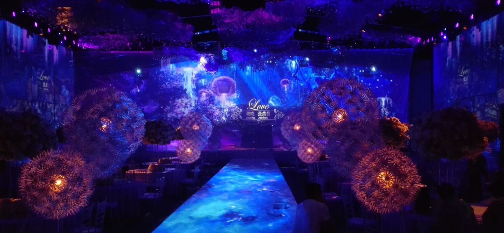 由科技手段对物体进行三维立体再现的素材,形象逼真、唯美唯俏、梦幻浪漫。只需一个人操控总控台即可瞬间变换宴会厅整体风格。宴会厅不用配备容易过时的豪华装修,借助科技手段即可实现多样可变的立体空间。灯光、音响、布景等设备的入驻更省去大量人力搭建和管理的成本。
