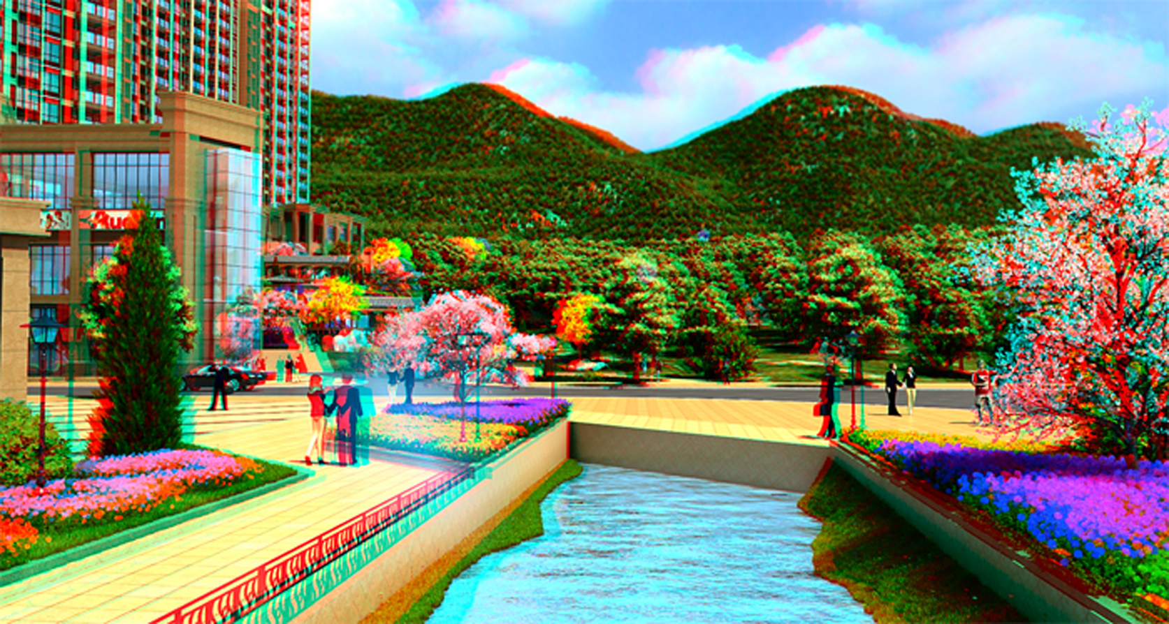 3D立体动画,利用两台并列安置的摄影机,分别代表人的左、右眼,同步拍摄出两条略带水平视差的画面,将左右眼平面投影,影像立体显现成像,令观众对影像产生立体深度,享受到全高清3D效果。