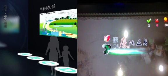 知识抢答游戏是参与活动的观众通过踩踏地面事先安装好的抢答器,,进行回答问题或选择下一题。通过踩踏器进行回答问题,选择的过程在大屏幕上同步显示,而且系统自动判断回答的是否正确,如果回答正确将播放一段高兴的音乐和音效,如果答题错误,则播放失败的音乐和音效。通过生动的知识抢答是参与者对知识更为深刻的记忆和理解。应用推荐:展厅、展会、规划馆、科技馆、博物馆等展馆宣传科普、科技等知识展示。