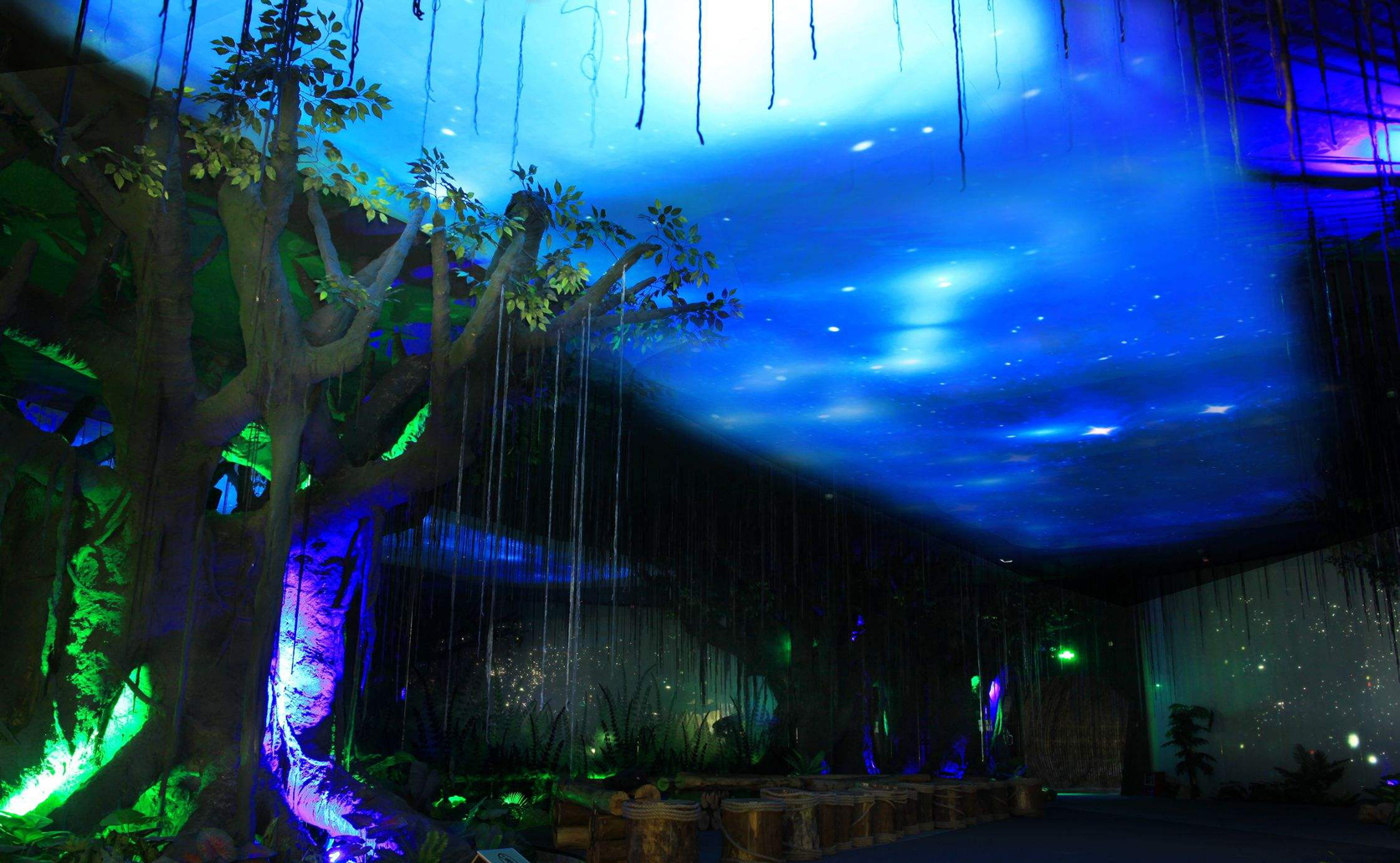 天幕投影通过全息投影技术来实现的,全息天幕投影是通过多组投影机,运用无缝拼接技术,将投影幕放置于整个室内的穹顶,配以音响系统、灯光系统,形成一种气势恢宏的超大震撼逼真的投影画面。这是一个新颖、创新的投影方式,互动性强,视觉冲击力强,音响效果超过影院效果,可以打造非常好的时尚氛围,让体验者们共享天幕带来的视觉盛宴。