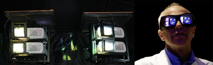 立体投影分为主动式和被动式立体。被动式立体投影系统是使用两台投影机,一台投射左眼图像,另外一台投射右眼图像,将左右眼图像同时投射到屏幕上,投影机镜头前安装偏振光片,使投射的光线变成偏振光,而观众配带的立体眼镜的镜片也是偏振光片,并且左眼的偏振片与投射左眼图像的投影机的偏振光片的偏振方向是相同的,右眼的偏振片与投射右眼图像的投影机的偏振光片的偏振方向是相同的,这样左眼图像只能透过左眼镜片,而右眼图像也只能透过右眼镜片,从而使观众看到立体的图像,一般的投影方式都是由一个图形通道驱动一台投影机。在多投影机的系统中就需要都投影通道来支持,这就是多通道立体环幕系统。
